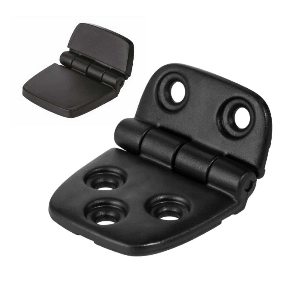 Strong and flexible hinge. Fully composite. Does not vibrate or make noise. Cover plates as an accessory to cover the screws with style.