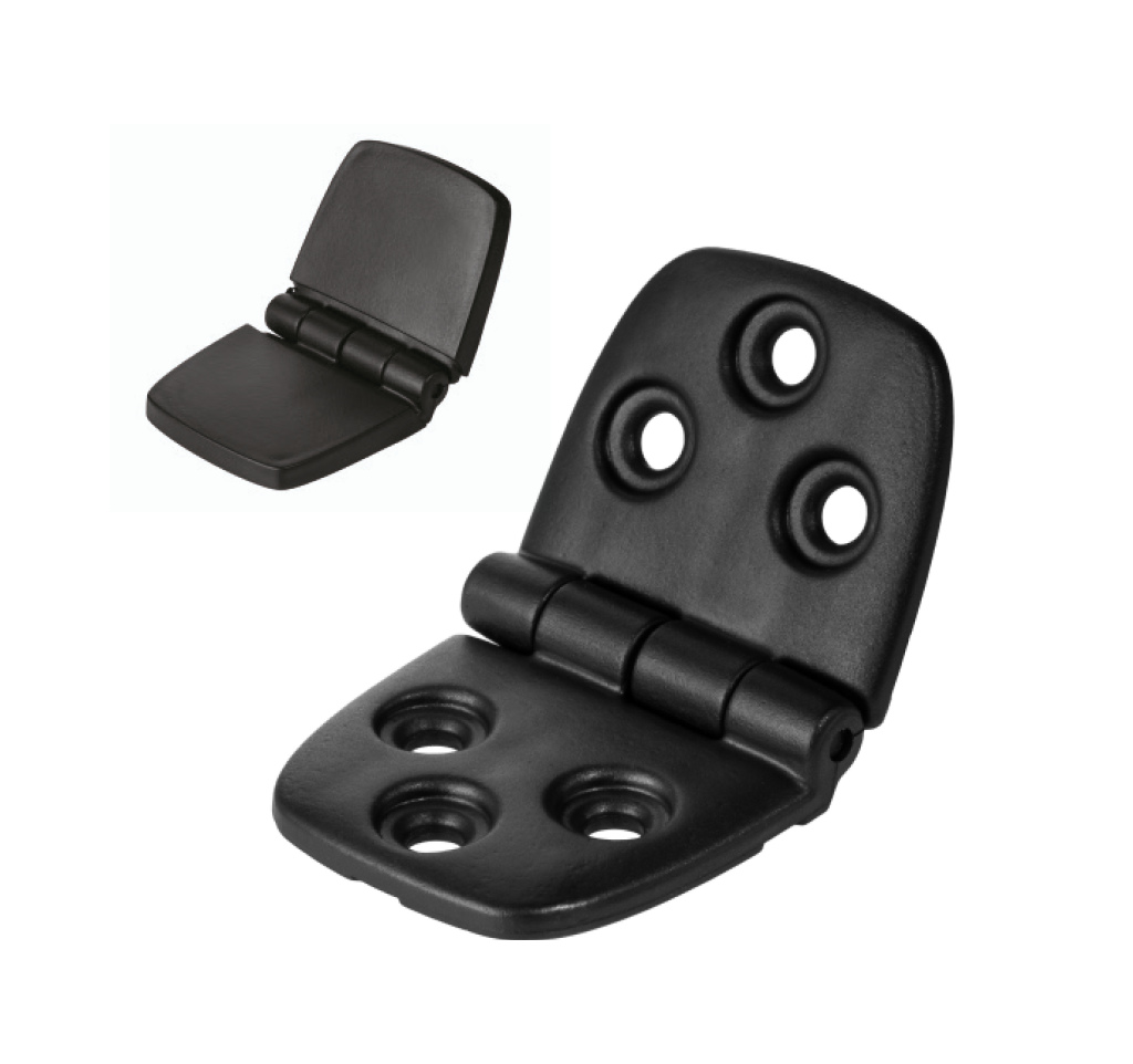 Strong and flexible hinge. Fully composite. Does not vibrate or make noise. Cover plates as an accessory to cover the screws with style.