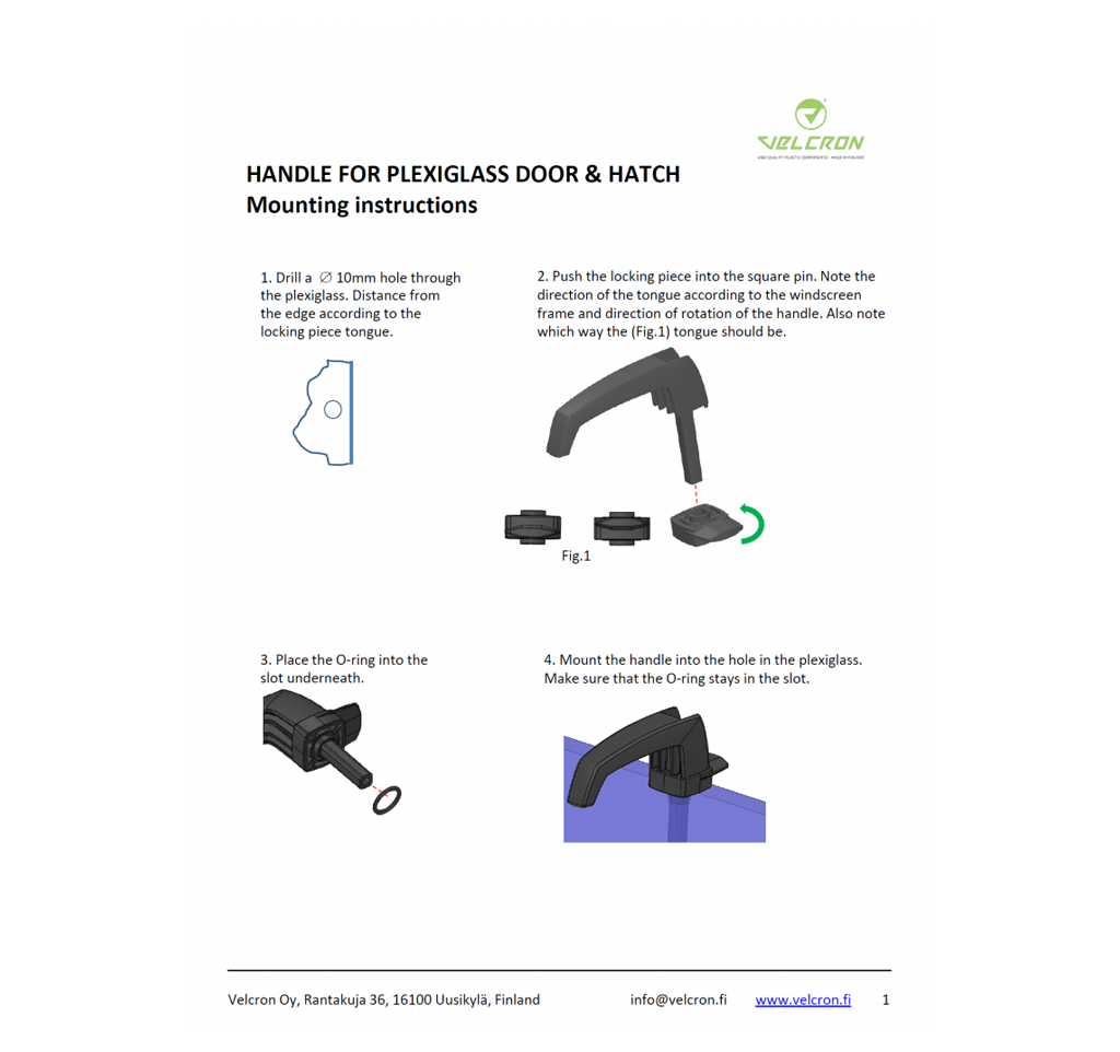 Asennusohjeet – Pleksioven- ja lasin lukituskahva 36000
